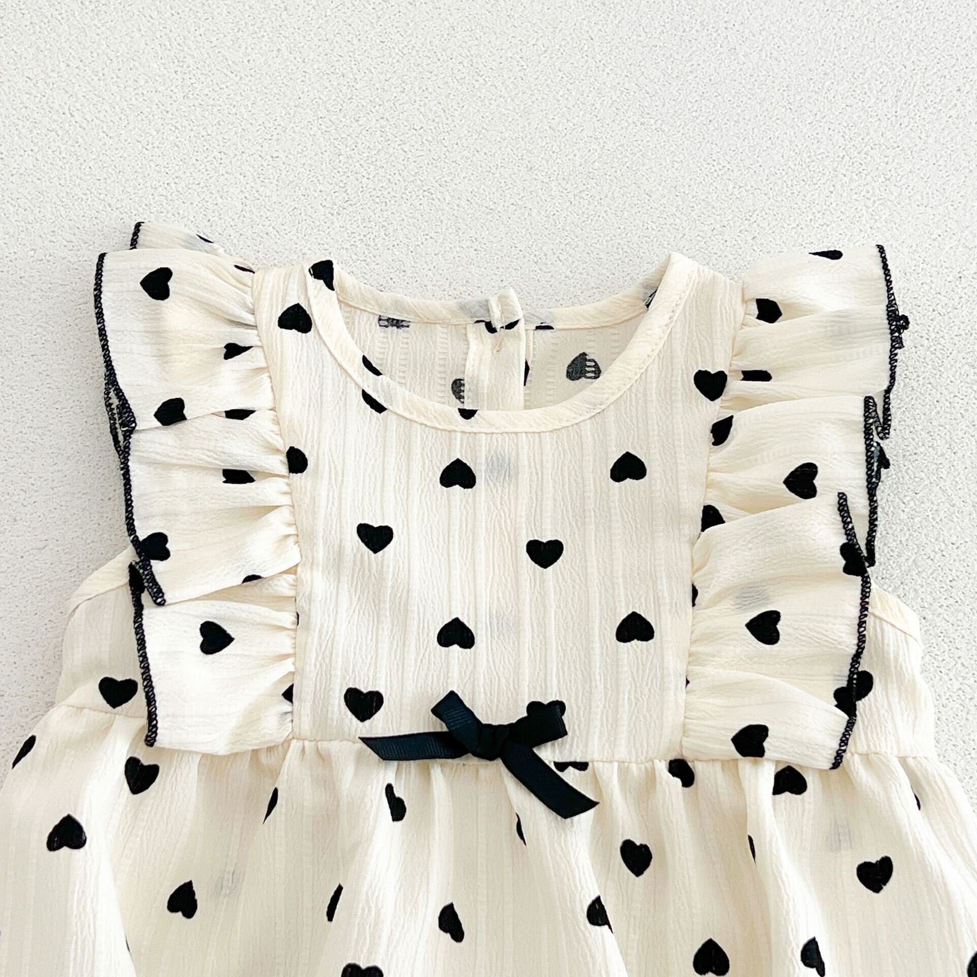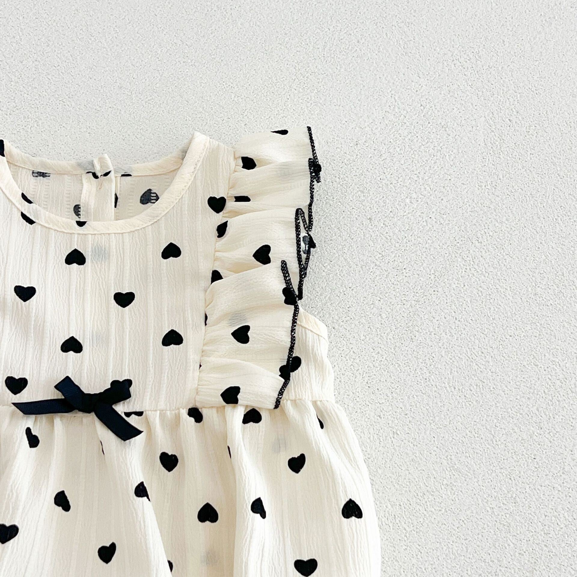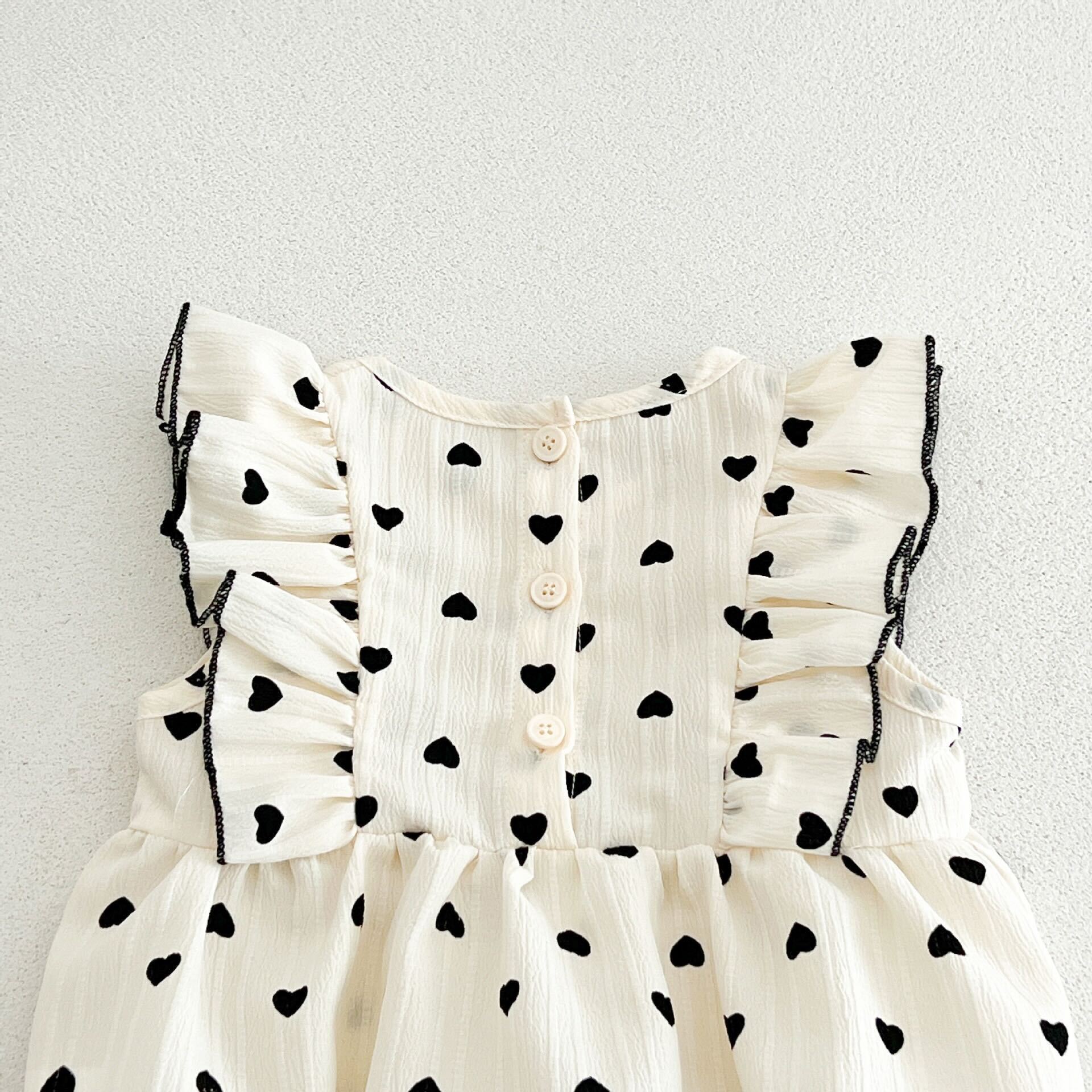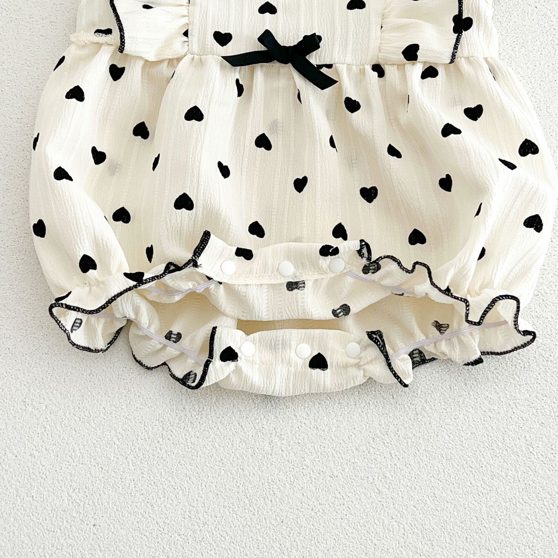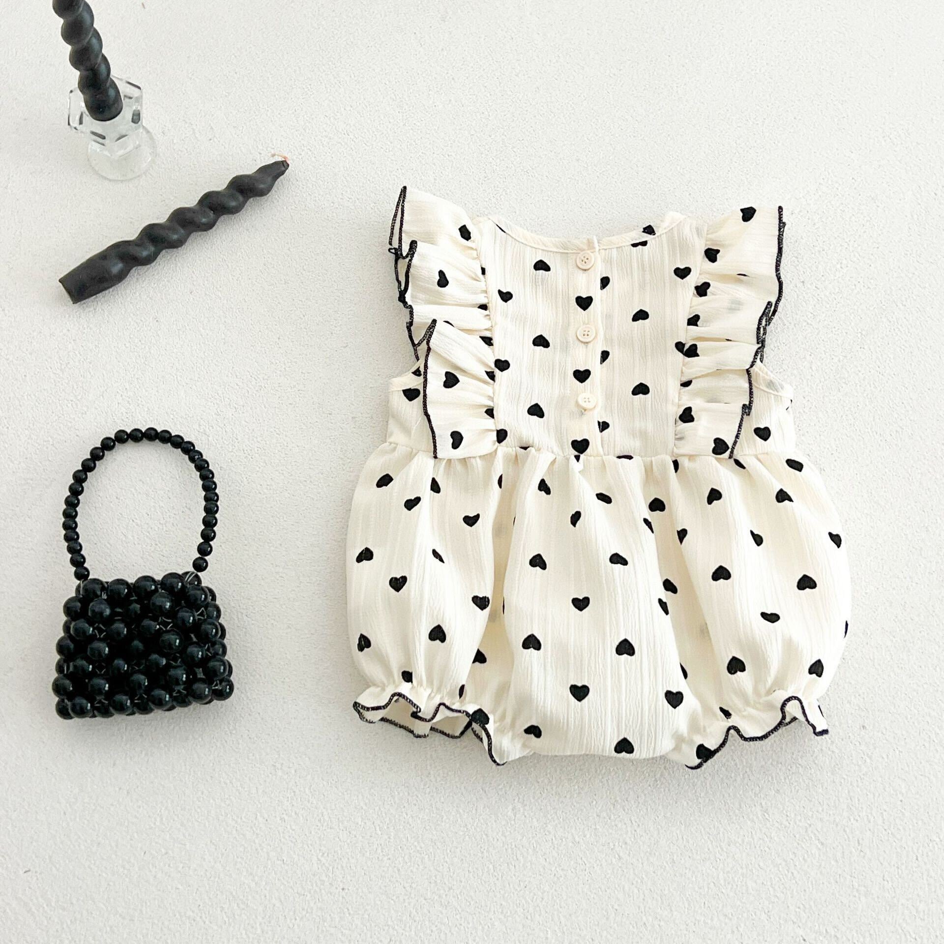 Heart printed ruffle romper - 0-6 Months is backordered and will ship as soon as it is back in stock.