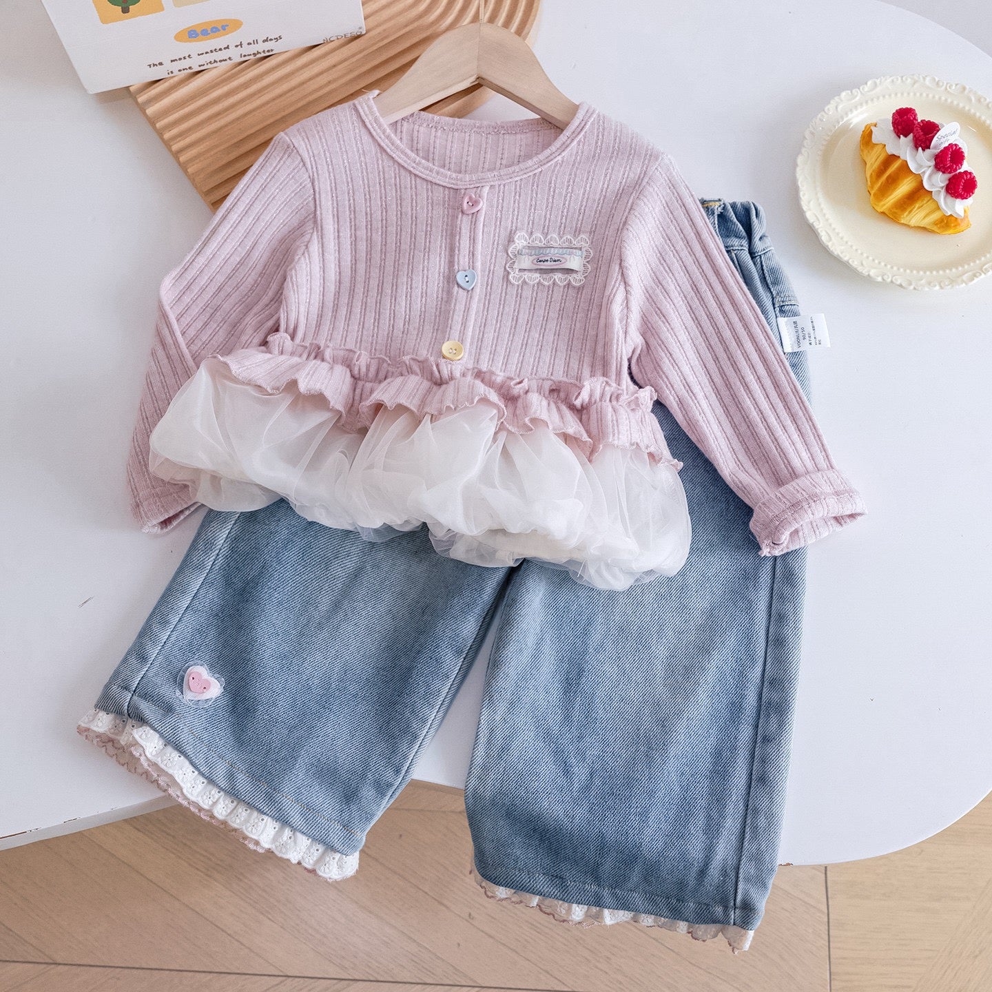 Buttoned frill top and denim set - 2 Years is backordered and will ship as soon as it is back in stock.