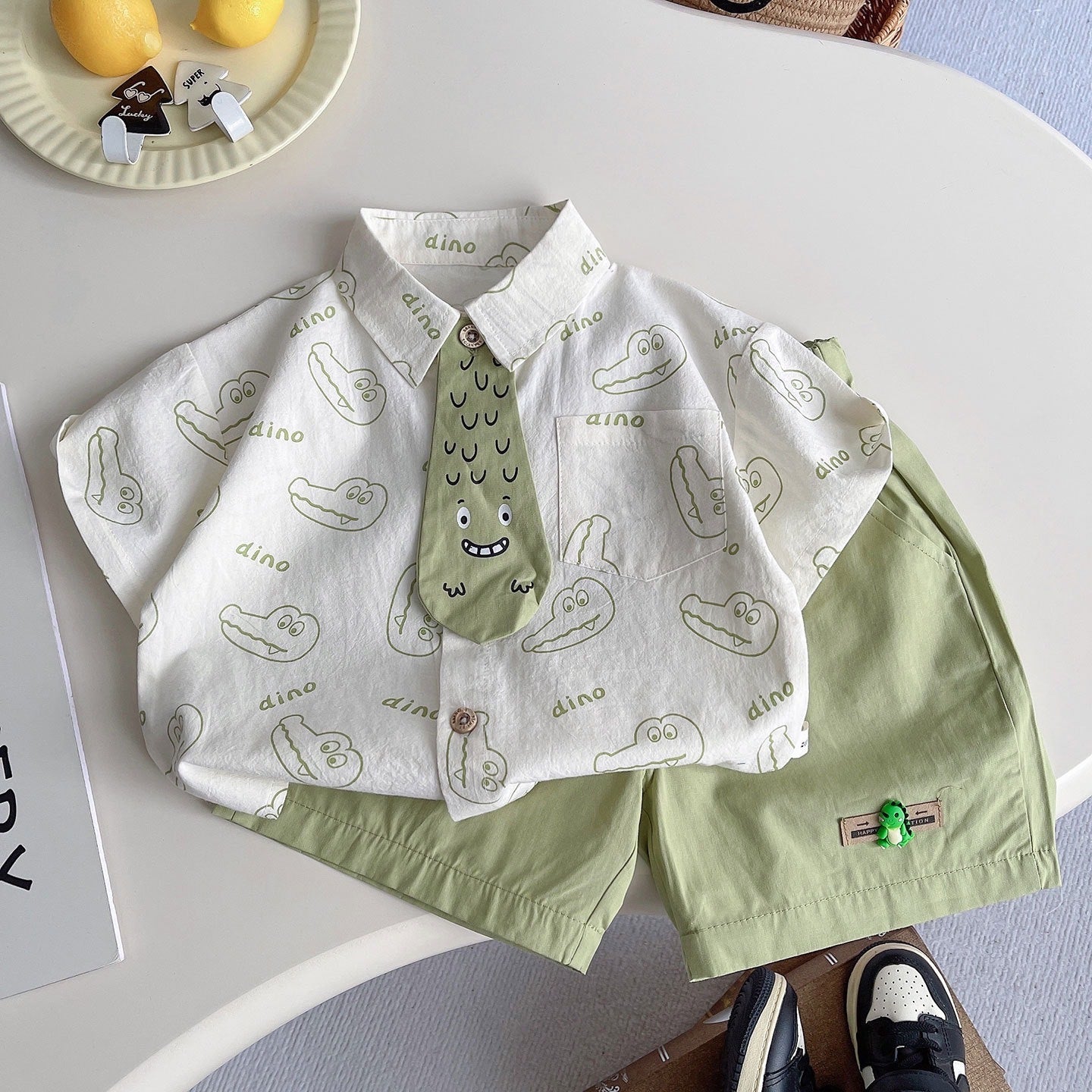 Dino printed shirt and shorts set - 1 Year is backordered and will ship as soon as it is back in stock.