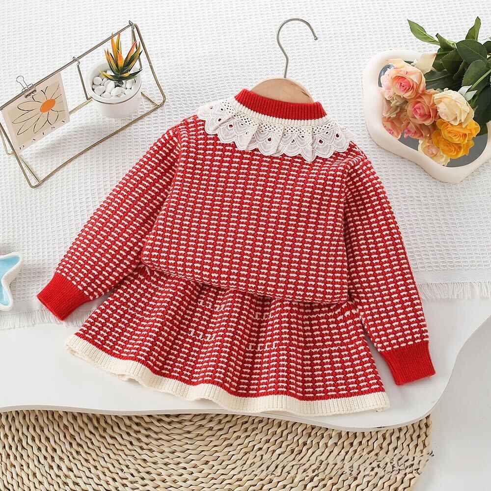 Checkered knitted winter set - Pink / 2 Years is backordered and will ship as soon as it is back in stock.