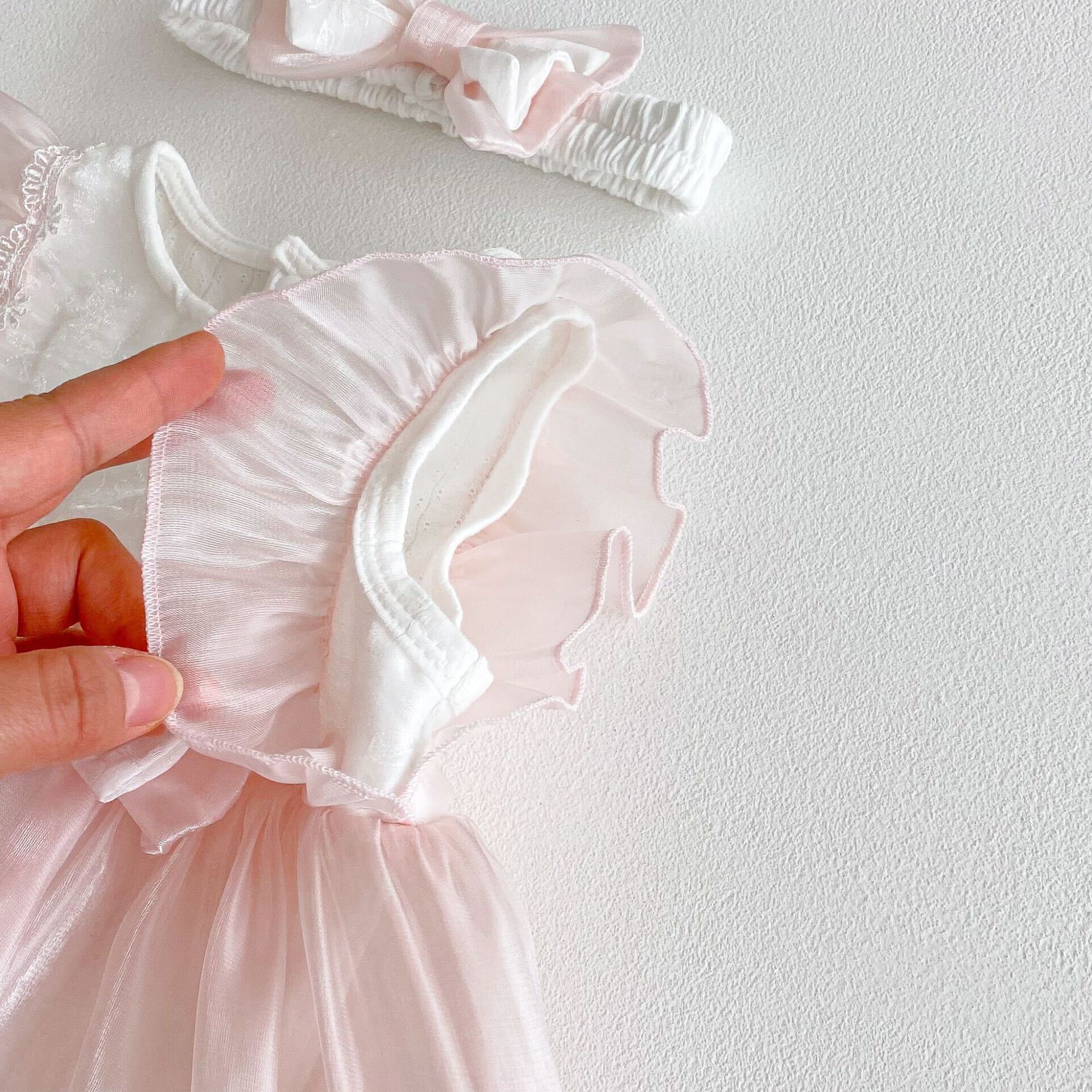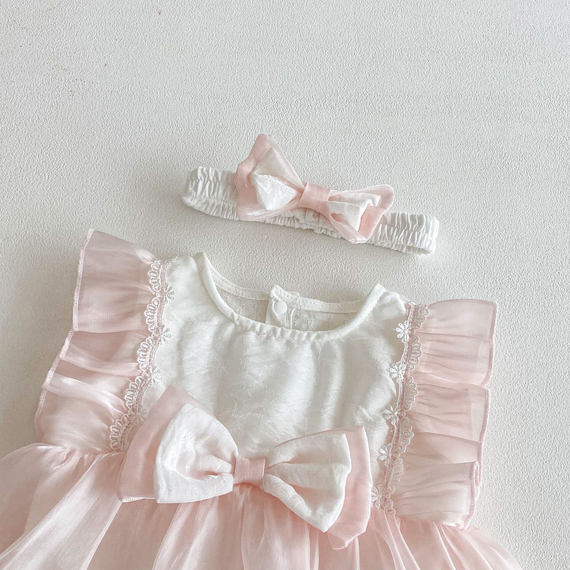 Pink bow net premium romper - 0-6 Months is backordered and will ship as soon as it is back in stock.
